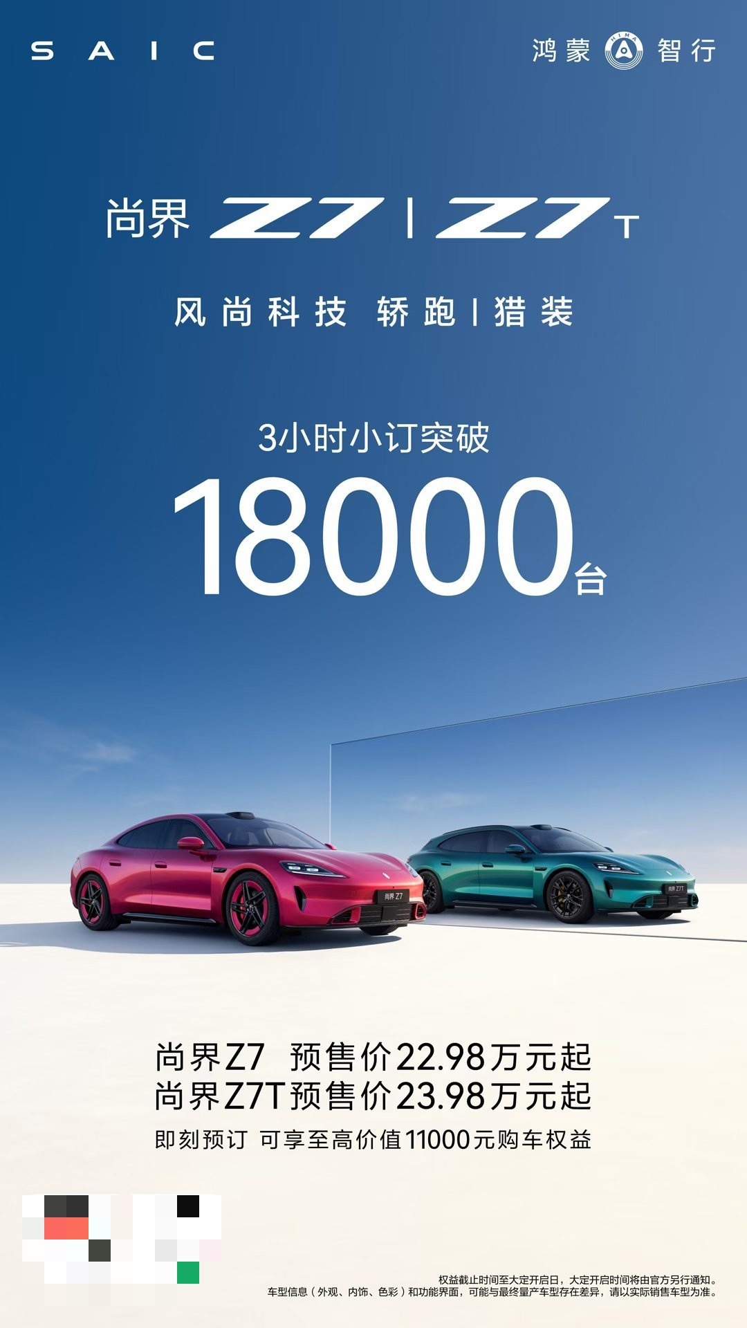 3月23日,華為春季新品發(fā)布會(huì)上,鴻蒙智行旗下的尚界Z7和Z7T轎跑/獵裝車型正式發(fā)布。尚界Z7預(yù)售價(jià)22.98萬(wàn)元起,Z7T預(yù)售價(jià)23.98萬(wàn)元起。兩款新車在3小時(shí)內(nèi)的預(yù)訂量已突破1.8萬(wàn)臺(tái)。尚界Z7采用掀背大后備設(shè)計(jì),最大開(kāi)口966mm,最大拓展容積1582L;Z7T最大開(kāi)口874mm,最大拓展容積1694L。兩款車均搭載“都市流光”大燈,采用鉆石切割設(shè)計(jì),擁有408個(gè)鐳射發(fā)光點(diǎn),并在大燈、外后視鏡、尾燈等處配備輔助駕駛小藍(lán)燈。尚界Z7還配有主動(dòng)式進(jìn)氣格柵、發(fā)光車標(biāo)等。